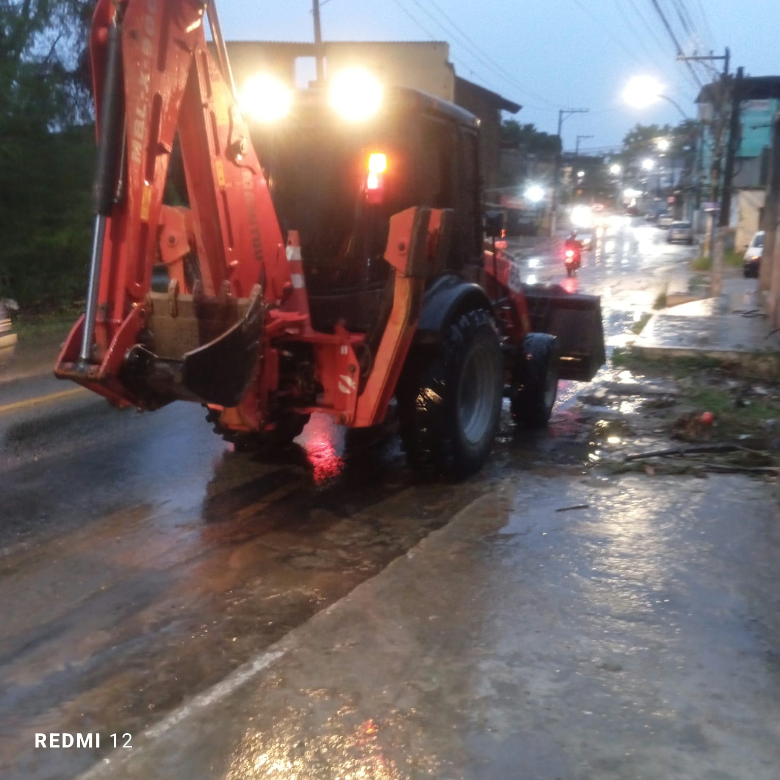 Equipes da Secretaria Municipal de Serviços Públicos também estão nas ruas para minimizar os impactos da forte chuva, realizando a limpeza e a desobstrução de vias afetadas.