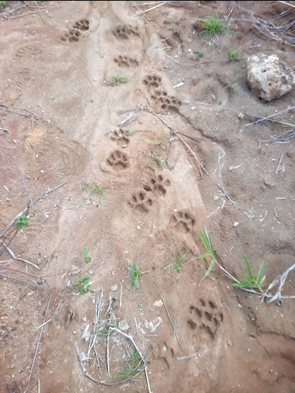 As pegadas da onça-parda também foram registradas por equipe da Secretaria Municipal de Obras (SMO), quando os profissionais estiveram no Parque Natural.