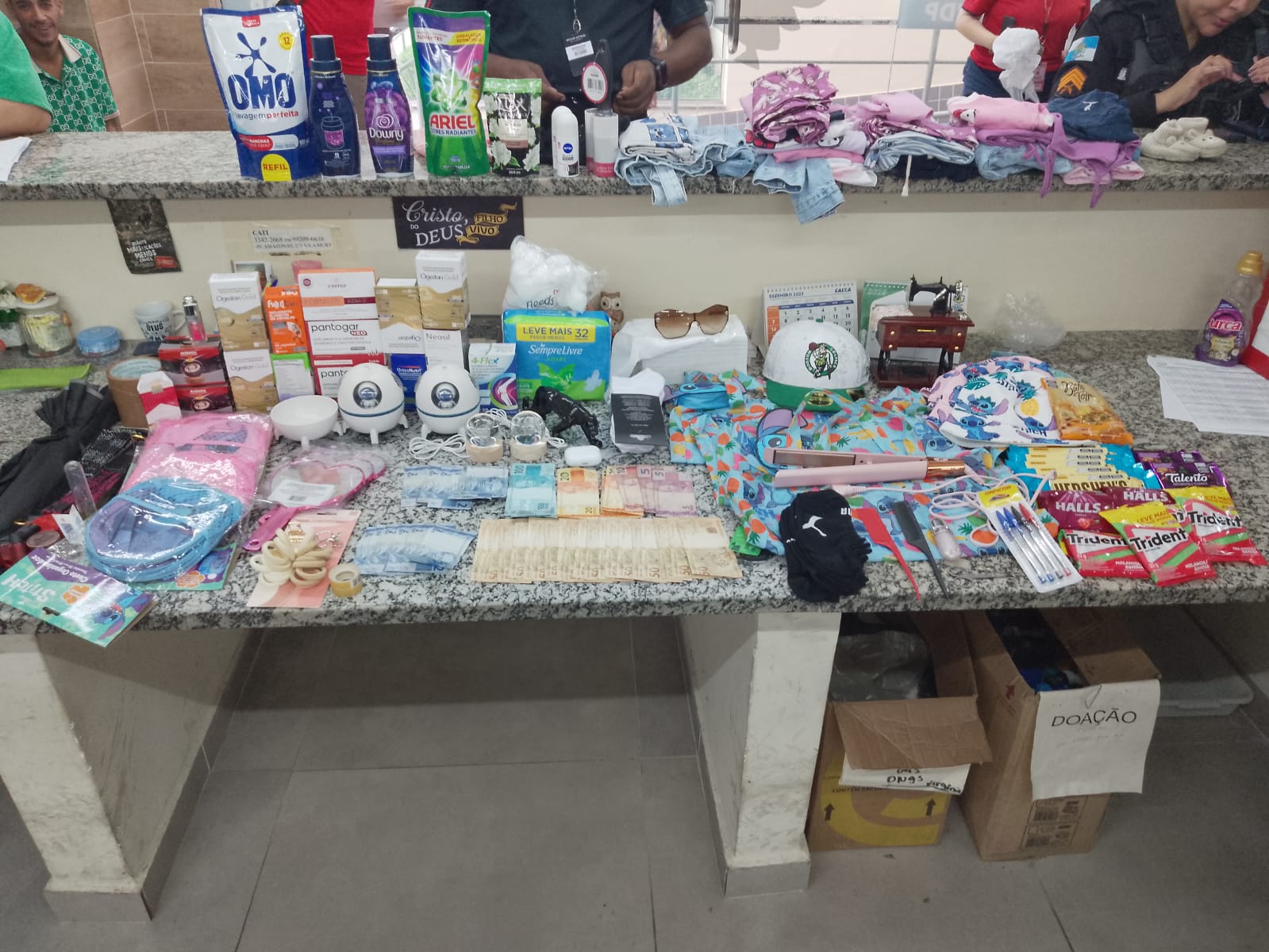 Durante a abordagem e vistoria no carro, os agentes encontraram uma grande quantidade de produtos que teriam sido furtados de lojas da região, entre eles 26 peças de vestuário, cinco chapéus, um eletrodoméstico, materiais de limpeza, medicamentos, produtos de higiene pessoal, itens de uso pessoal, bens de consumo e R$ 1.304 em espécie.